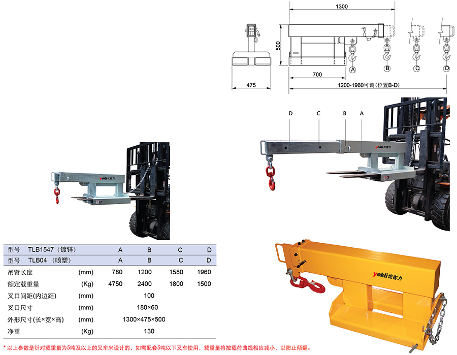 ● 可調伸縮超長吊臂,適用于叉車不易進入的區域進行操作。