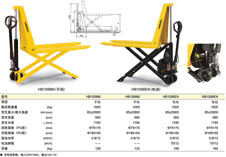 ● 電動系列采用免維護啟動電池,節省維護時間和成本,充電方便快捷,電量持久,帶電量顯示表,低電壓報警燈,內置式充電器。