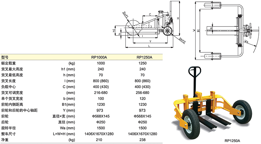 ● 設(shè)備品質(zhì)好,能搬運(yùn)重達(dá)1250kg的貨物。