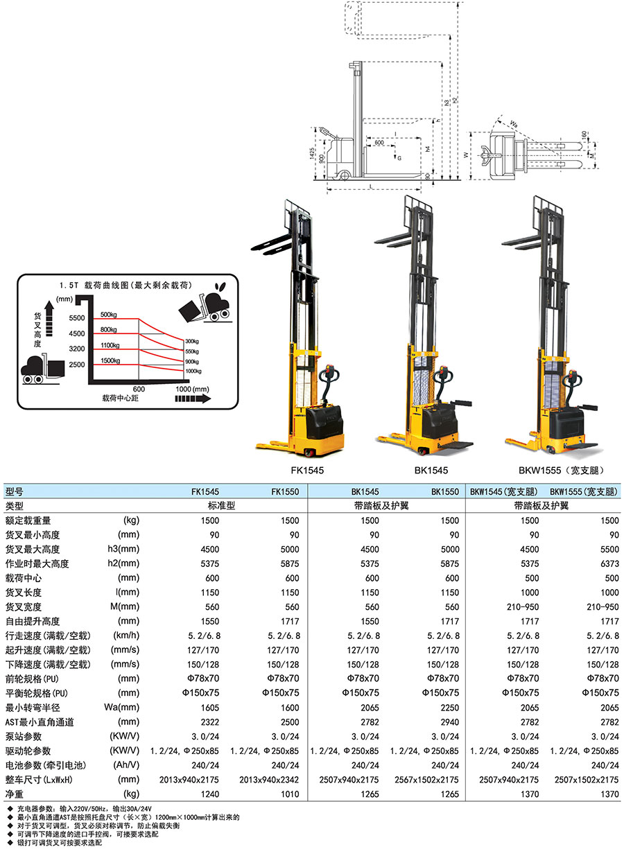 ● 以下堆高車僅適用于單面托盤必須嚴格按照堆高車的載荷曲線圖中所允許的剩余載荷進行操作,嚴禁超載使用,確保安全。